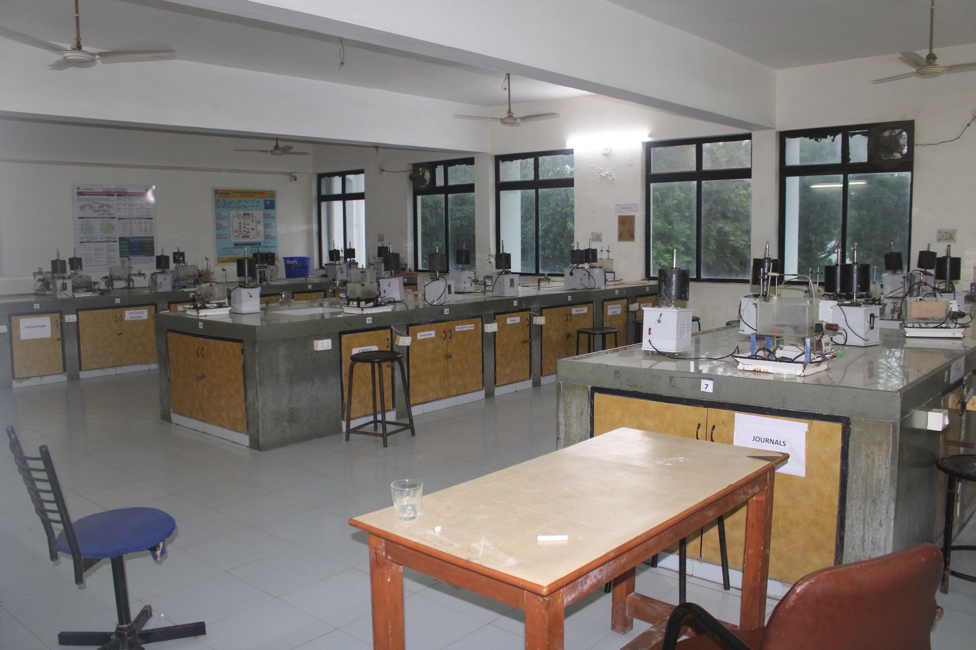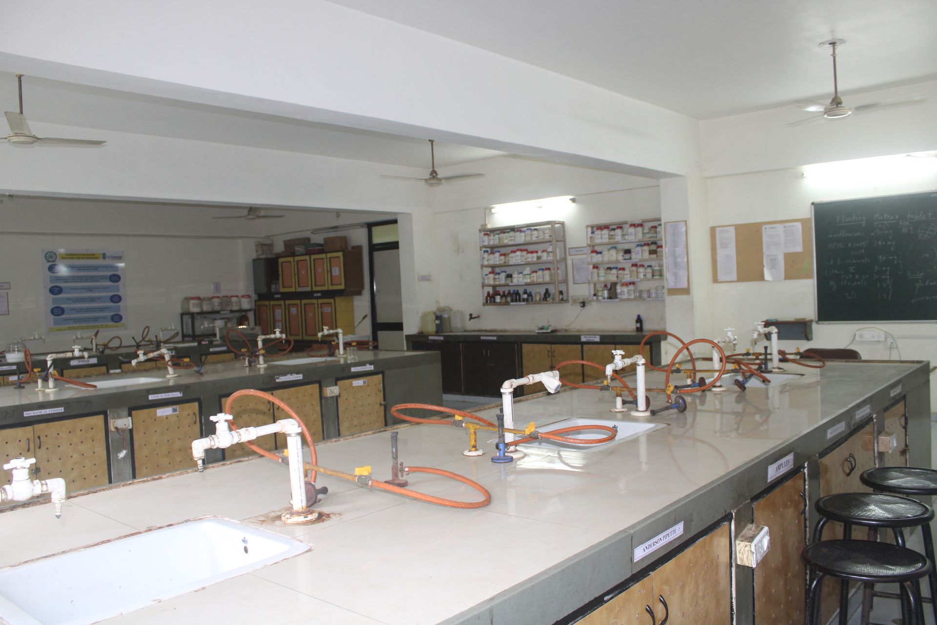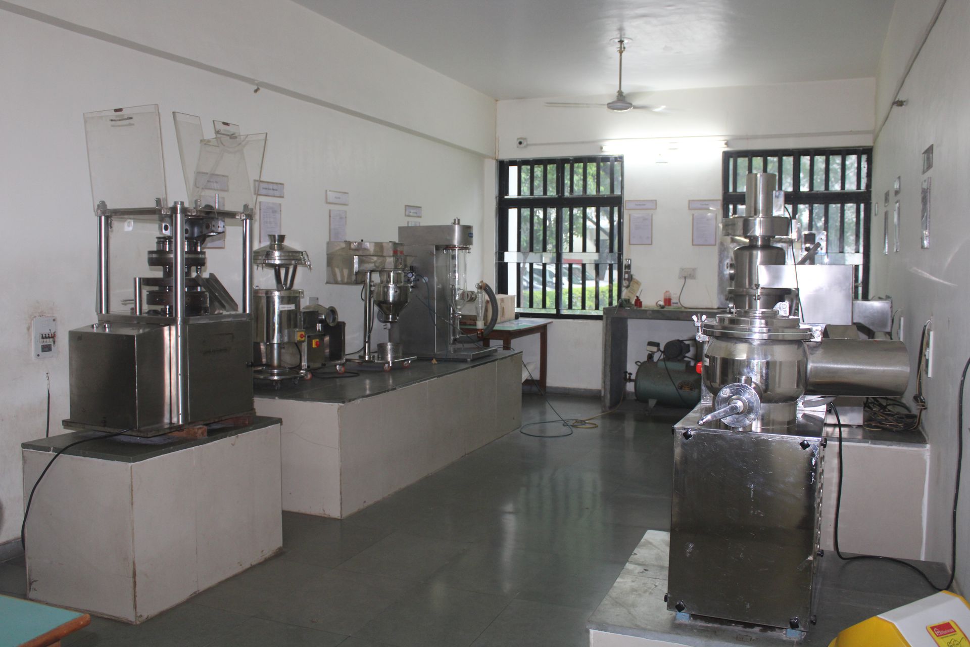 Laboratories at LJIP are well equipped with HPLC, FTIR, Lyophilizer, UV Spectrophotometer, Rotary Compression Machine, Extruder, Spheronizer, Coating machine, Ampoule Filling and Sealing Machine, Dissolution Apparatus, Rapid Mixture Granulator (RMG), Colloid & Multi Mill, Fluidized Bed Dryer (FBD), Franz diffusion cell apparatus, Single and double channel Physiograph, Semi-Auto analyzer, Biological Oxygen Demand Incubator (BOD), Flame Photometer, fuming hood, Rotary film evaporator and many more.