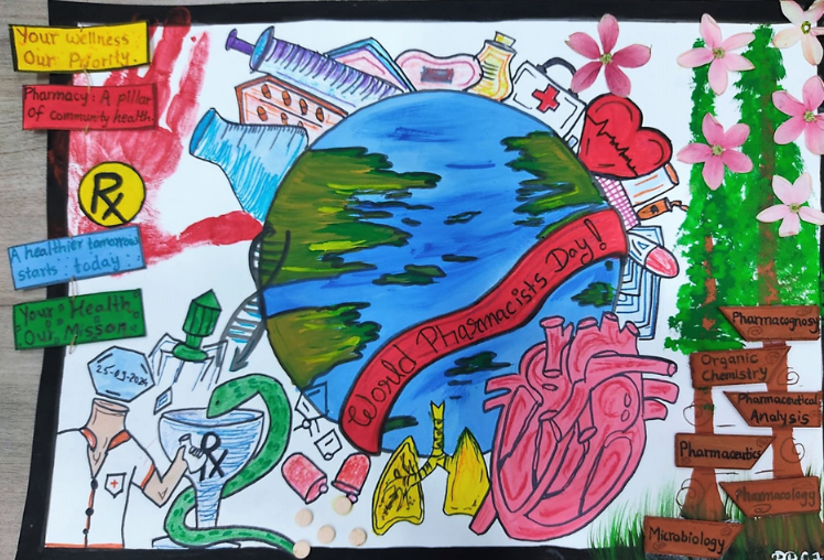 Competitions like Pharma Sketch, Poster, Cartoon, and Collage saw 100+ students showcase their creativity. The celebration extended to three outreach initiatives: